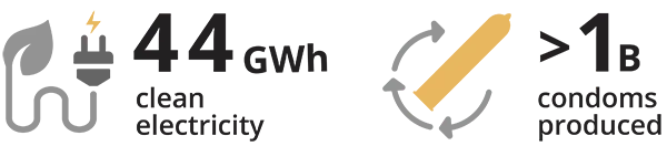 Over the next 15 years, the rooftop solar project is projected to generate 44 GWh of clean electricity — enough to produce more than a billion condoms using renewable energy.